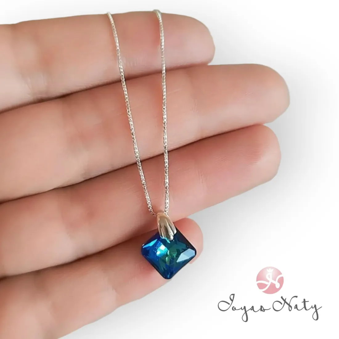 Dije cuadrado cristal sw+ Cadena veneciana 1.4g